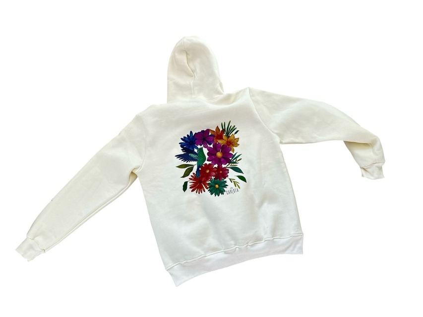 Buzo canguro con capucha, super abrigado. Fizado por dentro. Color tiza con estampa exclusiva. Ver más detalles